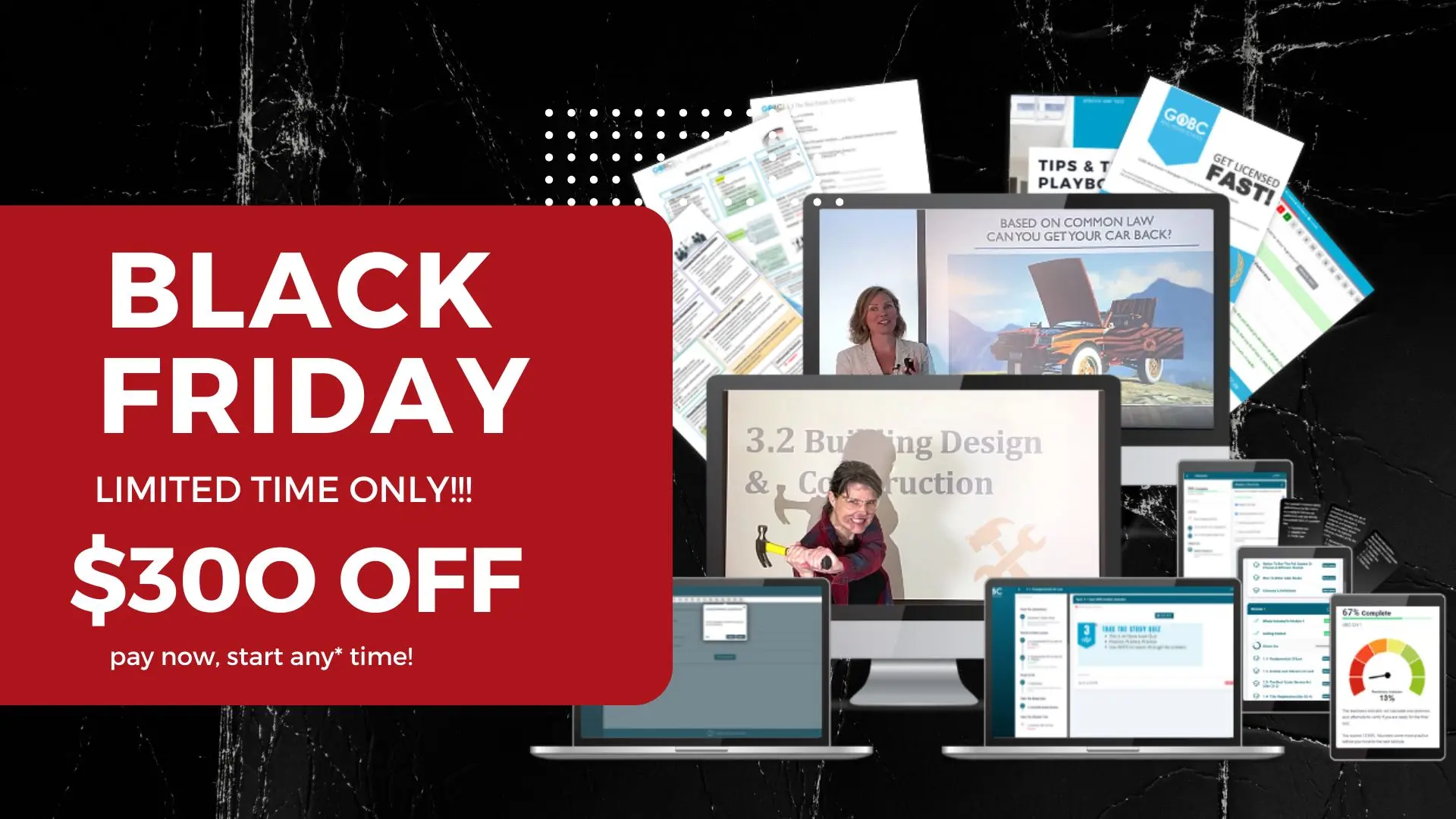 At GOBC, our Real Estate licensing course, Mortgage Broker course, Rental Property Management course, Strata Management course are designed to help you get licensed FAST. We provide video-based lessons, mock exams modeled on the UBC format, printable cheat sheets, and live Zoom coaching sessions. You can feel confident that you’re studying exactly what’s required to Pass UBC Exam.